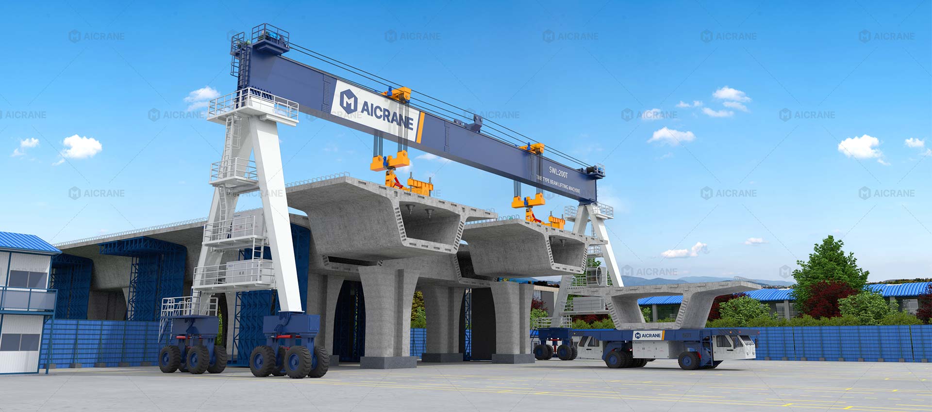 廣泛用于橋梁施工,將混凝土梁從預(yù)制廠(chǎng)運(yùn)至施工現(xiàn)場(chǎng)。還可用于橋梁構(gòu)件的吊裝作業(yè)。